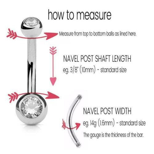 Belly Bars Navel Bar Button Ring CZ Gem Body Piercing Jewellery Surgical Steel