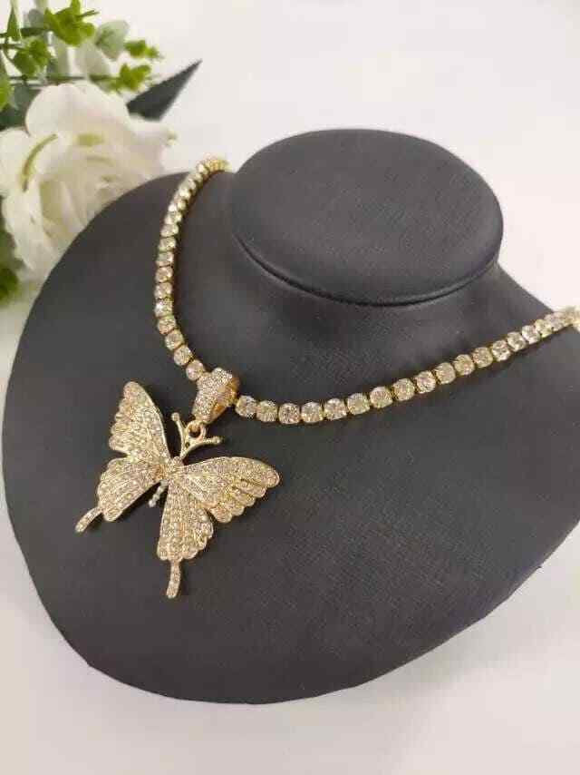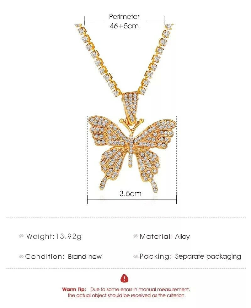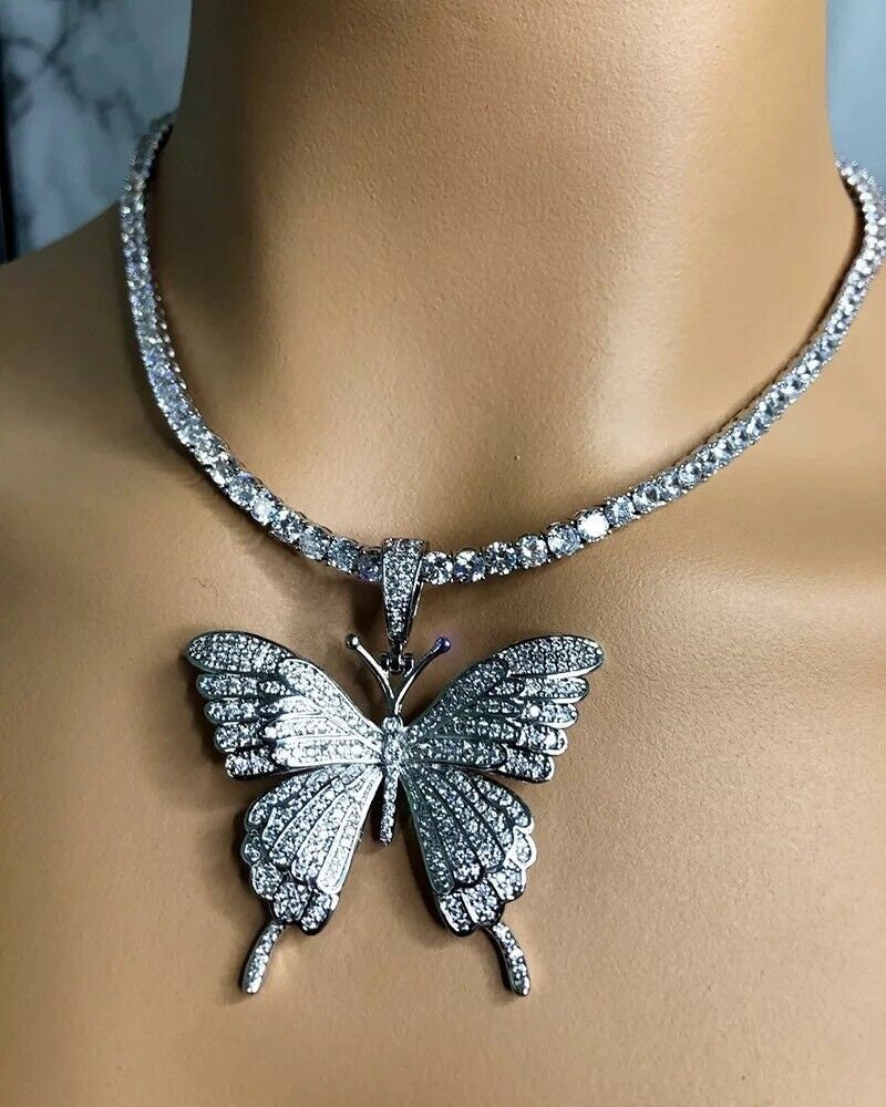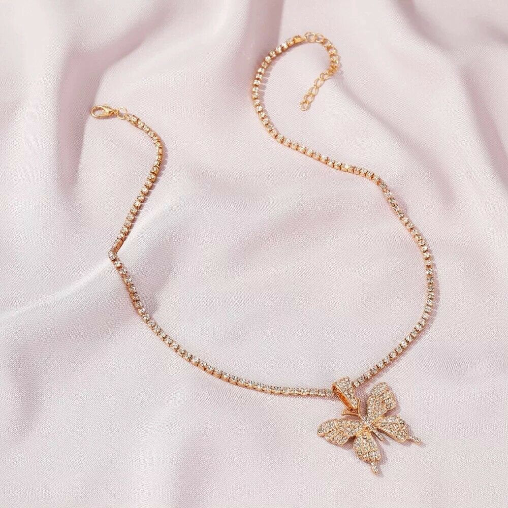 Bling Butterfly Pendant Rhinestone Chain Women Bling Crystal Choker