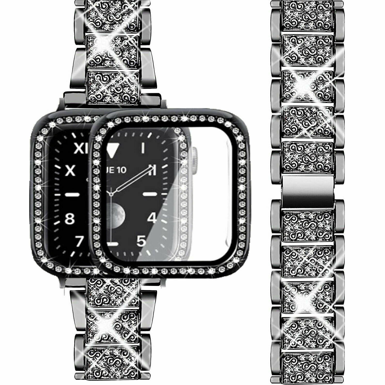 Bling Metal iWatch Strap+Full Screen Case For Apple Watch Series SE 6 5 4 3 2 1