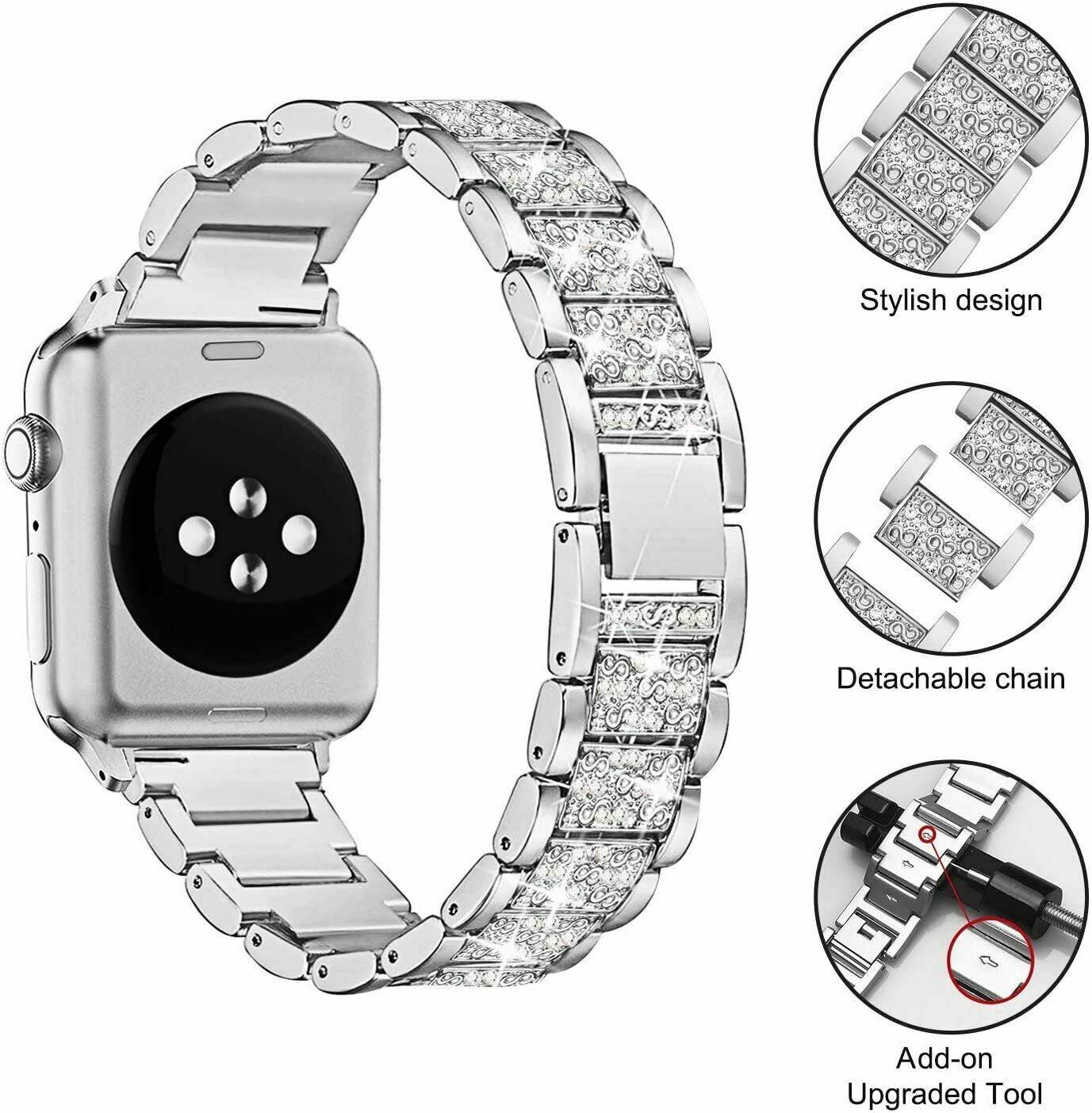 Set with rhinestones. Makes your iwatch band look like a jewelry. Brings you lots of compliments