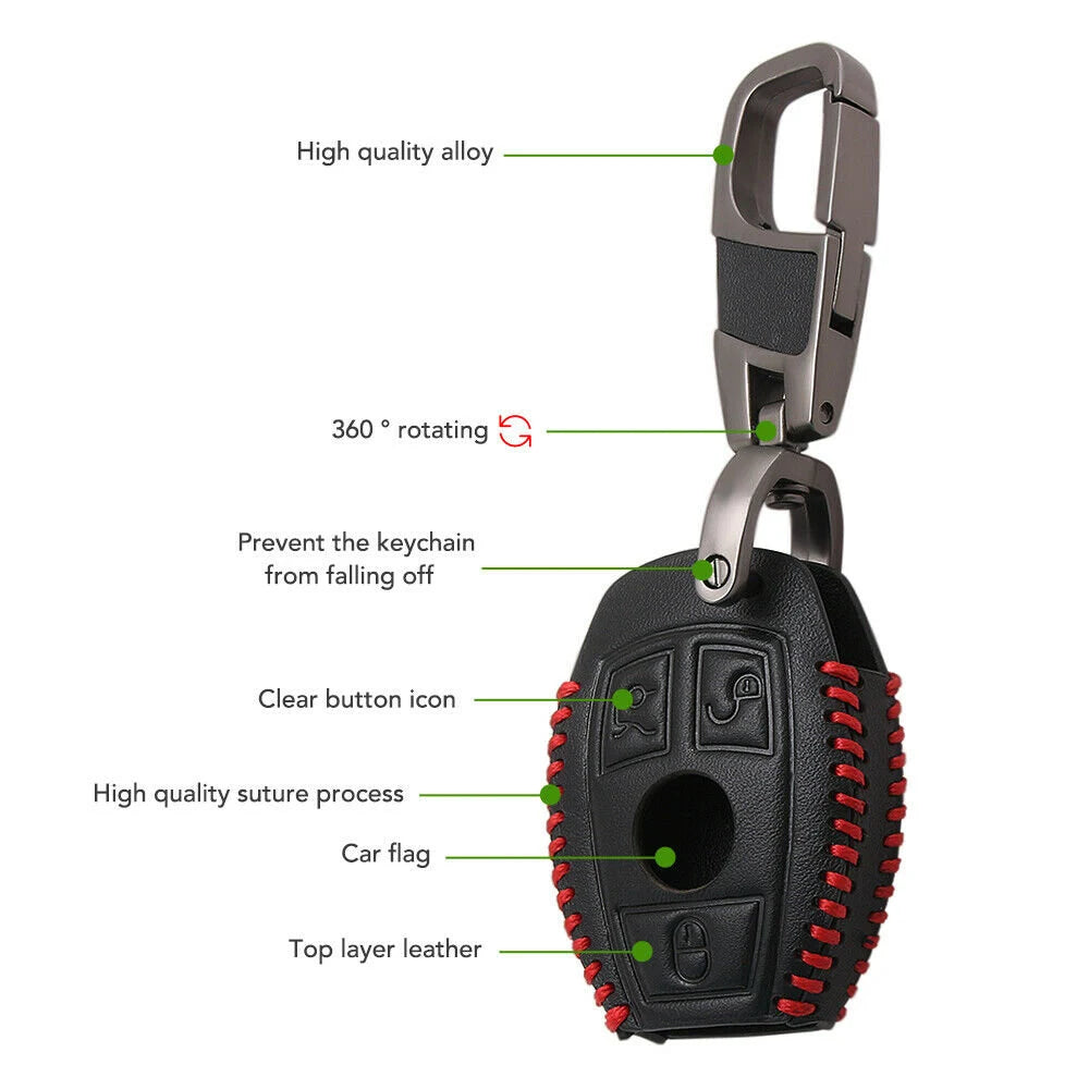 Car Black Leather Remote Key Fob Cover Case For Mercedes Benz AMG W203 W210 W211