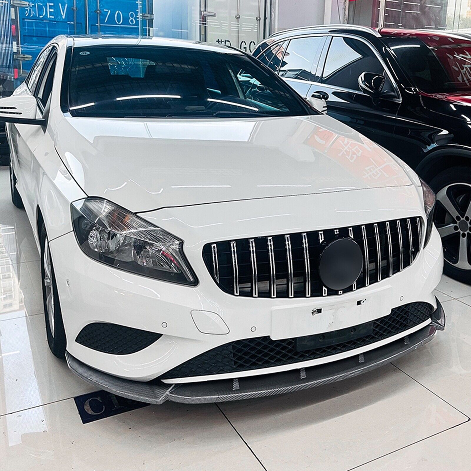 Car Front Bumper Spoiler Lip For Benz A Class W176 2013-2015 Carbon Fiber Look