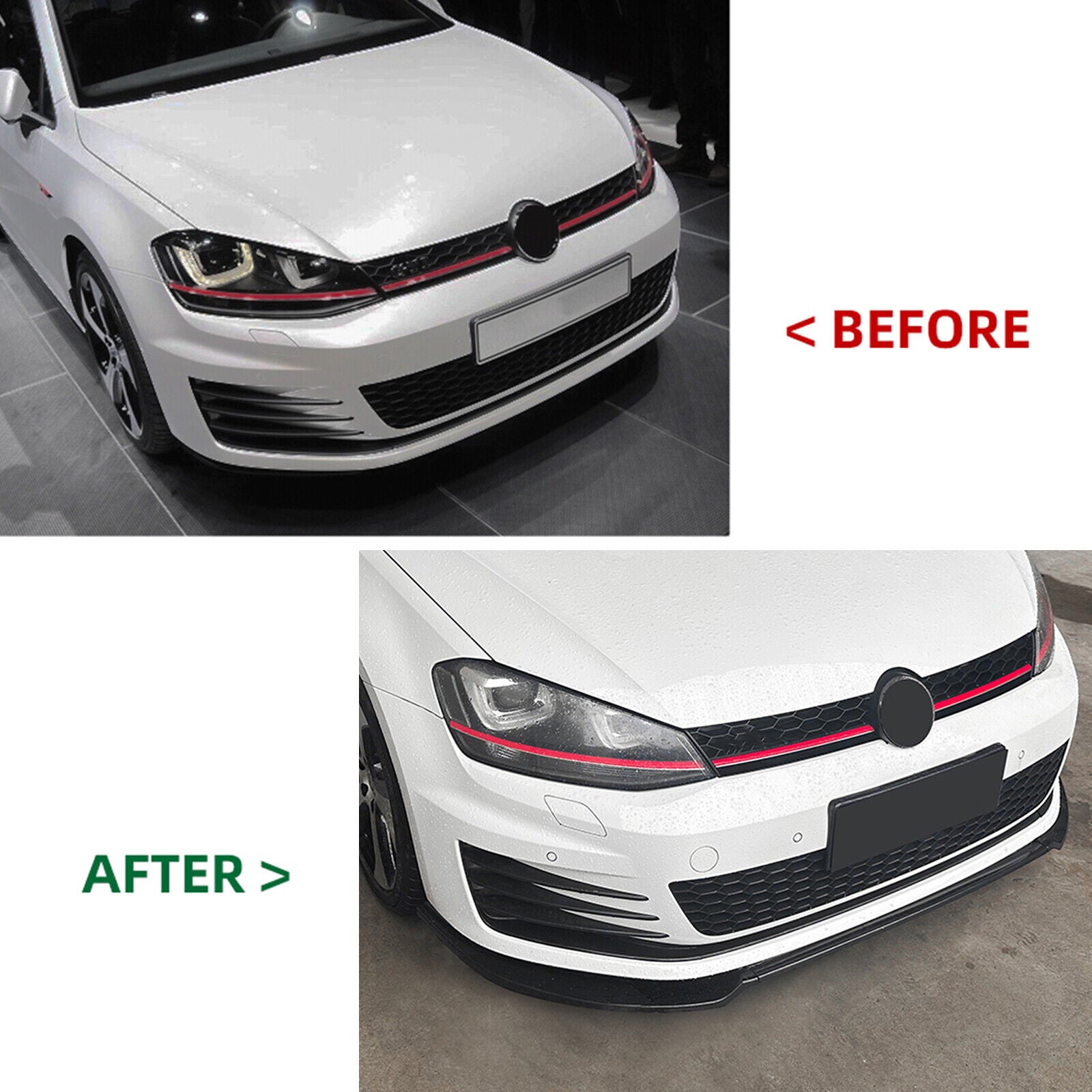 Please kindly check your car model and make sure the model fits in case of buying the wrong product.Specifications :Fitment : For Volkswagen Golf 7 MK7 GTI R Rline 2013-2016 ( After June 2013 )NOTE : Not for MK7 standard models!!! Material : High ABS PlasticColor : Black Carbon Fiber LookInstallation : Direct ReplacementPlace on Vehicle : Front, LowerPackage Including :1 Set / 3 Pieces of Front Bumper Spoiler Lip KitFeature:-According to the original factory specifications.- and high .-Made of light weight & top-grade durable ABS plastic material.-Will dramatically improve the sporty appearance for your car.Installation Notice :1. No installation instruction included, professional installation is highly recommended!!!2. Any damage and improper installation during the installation will be void3. Tape is use for fix the position only, screws are needed in the installation.*
