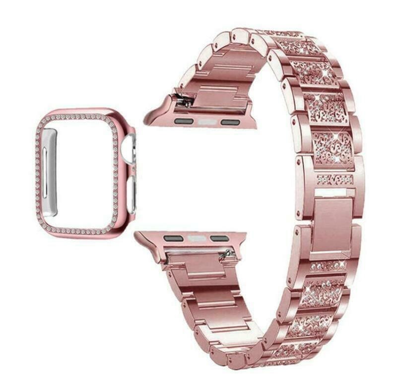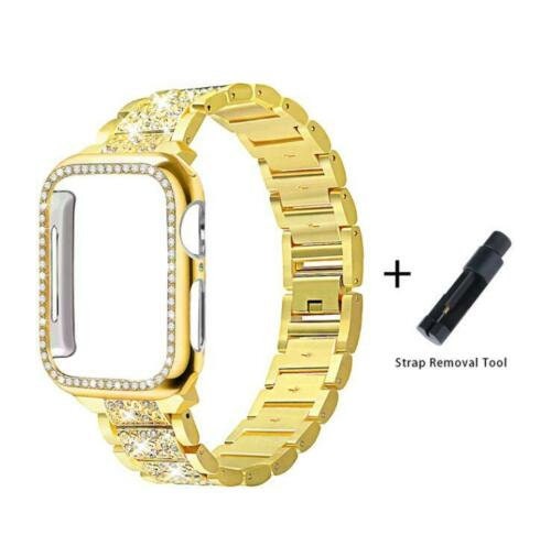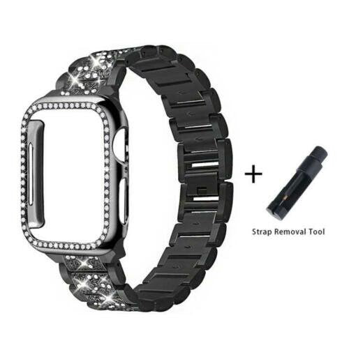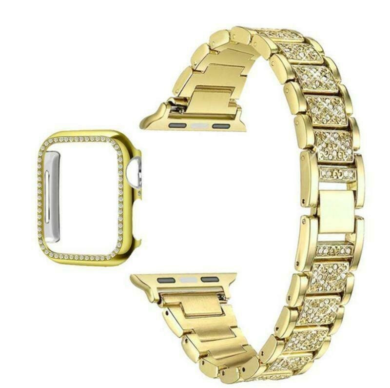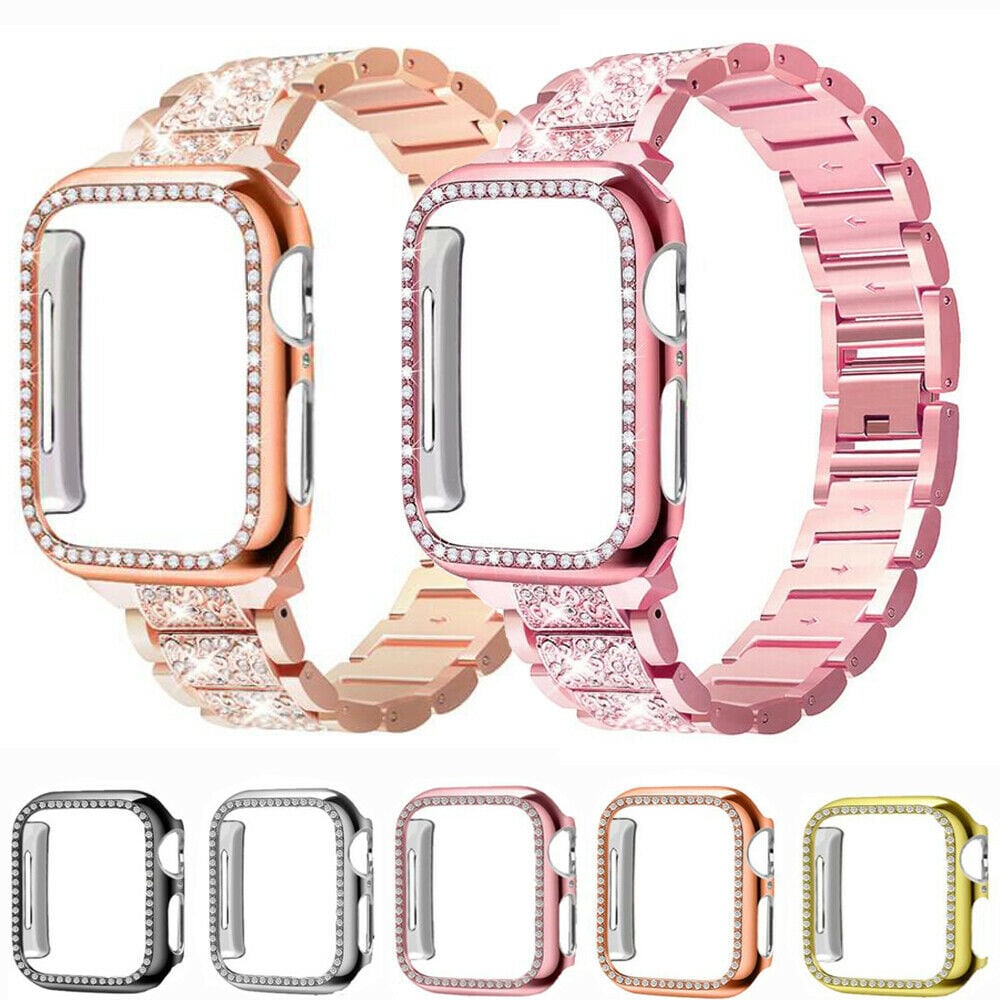 Diamond Strap & Bling PC Bumper Case for Apple Watch Series SE 6 38 40 42 44 mm