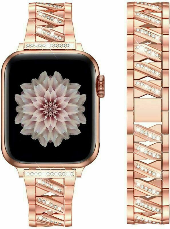 for Apple Watch Strap Series SE 6 5 4 38 40 42 44 mm Rhinestone Link Bling Metal