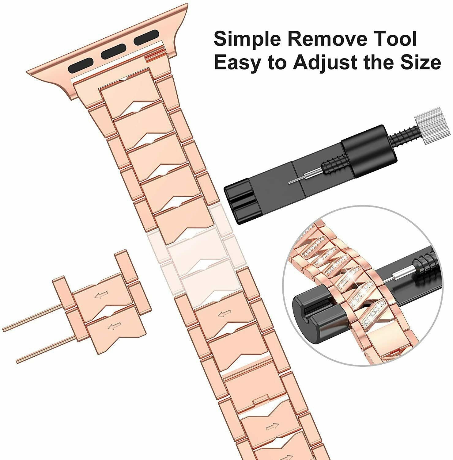 2.Comes with upgraded resizable tool and clear instruction, you could easily remove the extra links for the watch band to fit your wrist perfectly.