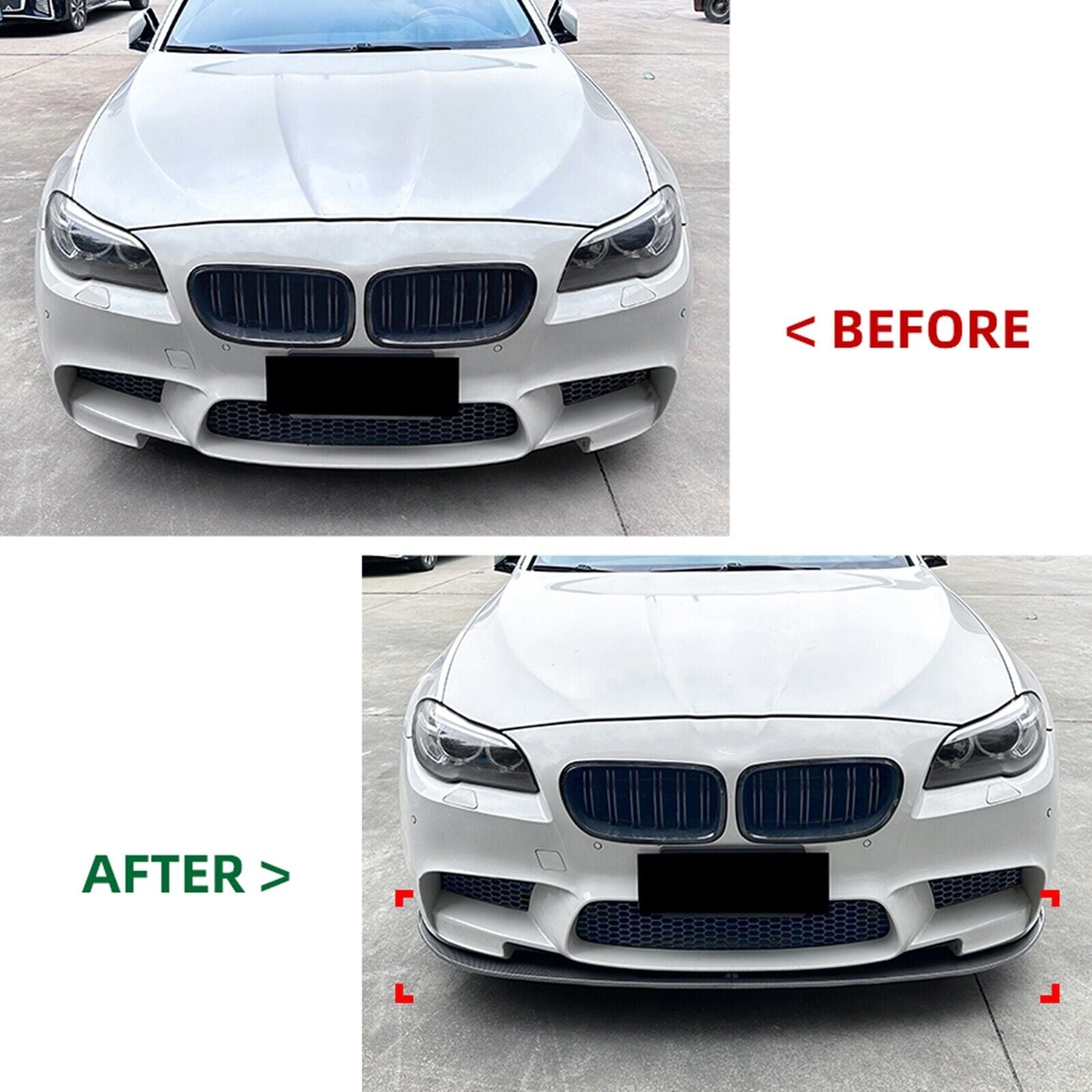 Specifications :Color : Gloss BlackMaterial : High ABS PlasticPlacement on Vehicle : FrontInstallation : Direct ReplacementPackage Including : 1 Set of Front Bumper Spoiler LipFitment :For BMW F10 F11 M5 2012-2016 ( After June 2012 )* Not for 5 Series F10 sedan!!Features :- Easy install and durable use.- Stable characteristics, high reliability.- and high .- Strict control standards to Build and test.- Perfect cover that is useful,helpful and so practical.- It'll give you excellent look , Decorate your car charming luxury vivid.Note :- Instruction Not Included, Professional Installation Is Recommended.- Please allow 0.5-1 inch difference due to manual measurement. (1inch=2.54cm)- Please compare the pictures to make sure it fits before purchase,If you have questions, please contact us.