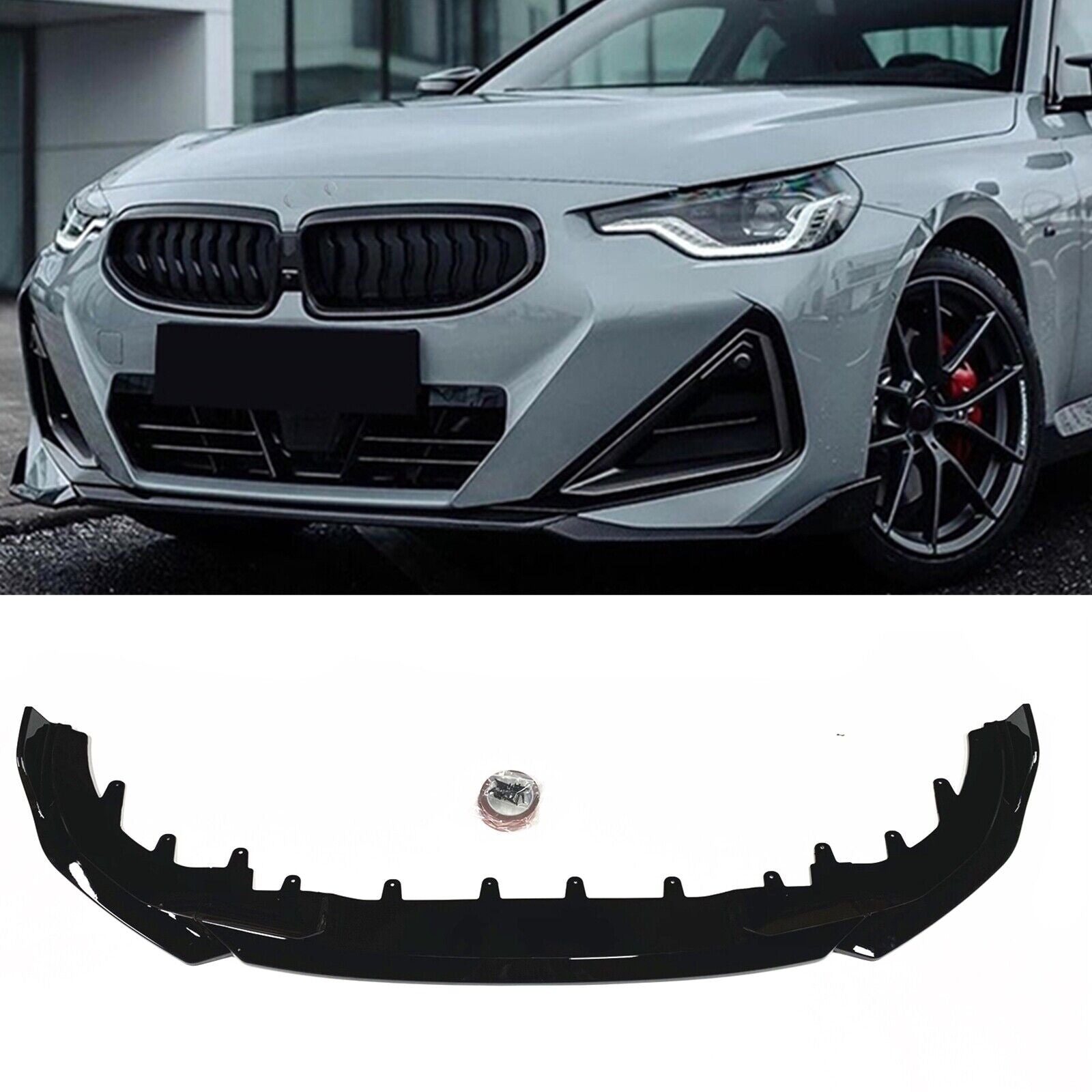 Please kindly check your car model and make sure the model fits in case of buying the wrong product.Specifications :Fitment : For BMW 2 Series G42 2022-2024 M Sport 2 Door CoupeMaterial : High ABS PlasticColor : Gloss BlackInstallation : Direct ReplacementPlace on Vehicle : Front, LowerPackage Including :1 Set / 3 Pieces Front Bumper Spoiler Splitter Lip Kit( adhesive tape and screws are attached.)Note :1.Only for 2 door coupe!2.Tape is use for fix the position only,screws are needed in the installation.Feature:- and high .-Decorate your car charming luxury vivid.-Easy to use and to operate at affordable prices.-Perfect cover that is useful,helpful and so practical.-Made of light weight & top-grade durable ABS plastic material.-Will dramatically improve the sporty appearance for your car.Installation Notice :1.No installation instruction included,professional installation is highly recommended!!!2.Any damage and improper installation during the installation will be void