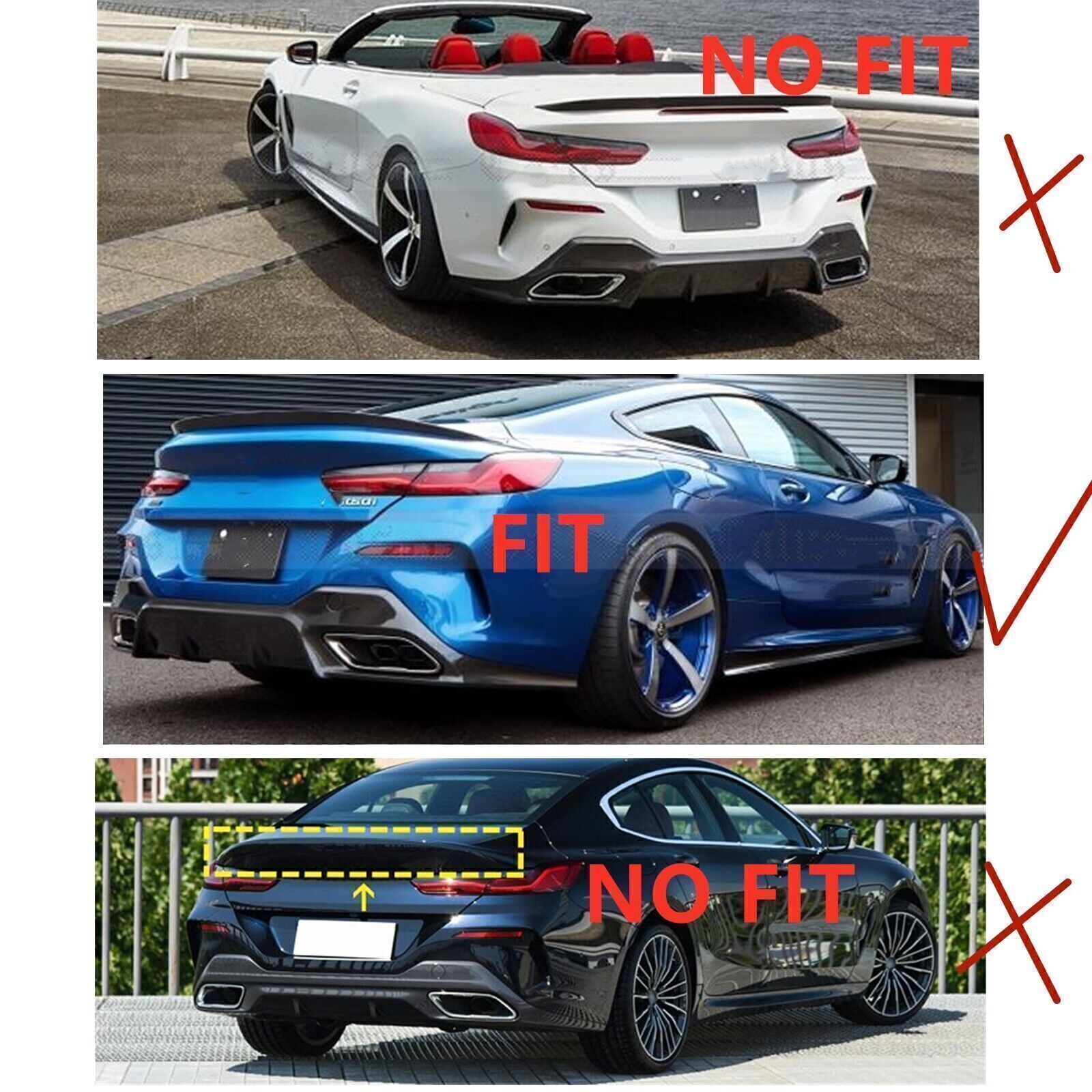 Please kindly check your car model and make sure the model fits in case of buying the wrong product.Specifications :Fitment : For BMW 8 Series G15 F92 M8 Coupe 2019-2023 PSMMaterial : High Carbon FiberColor : Black Carbon Fiber LookInstallation : Direct ReplacementPlace on Vehicle : Rear,RoofStyle : PSM StylePackage Including :1 Piece Rear Trunk Spoiler Lip WingNote :1.NOT fit for convertible!2.Only for 2 door coupe.Feature:- and high .-Decorate your car charming luxury vivid.-Made of light weight & top-grade durable carbon fiber material.-Will dramatically improve the sporty appearance for your car.- 3K weaven carbon fiber cover with hard UV-protected coating.Installation Notice :1.No installation instruction included,professional installation is highly recommended!!!2.Any damage and improper installation during the installation will be void3.Before stick it please clean tiny particles and dust on the surface.Important Notice : all of our products are required to be installed in professional Modification car shop , NOT every car shop can make it ! Our products are modified car parts , NOT original products ,Small install gap is Allowed !