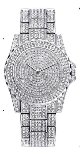 Silver Cubic Zirconia Crystal Women Ladies Men Fashion Bling Steel Watch Uk