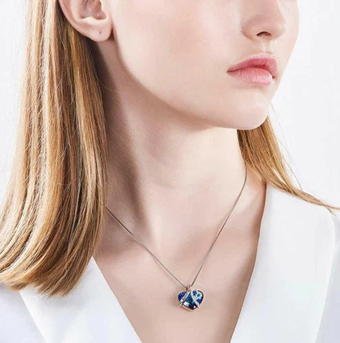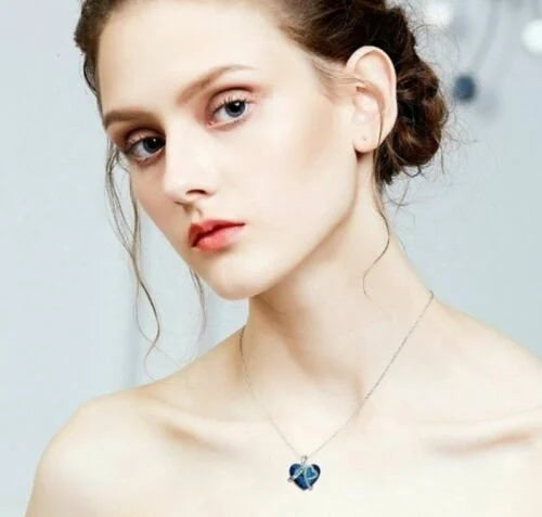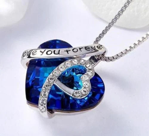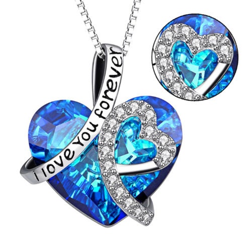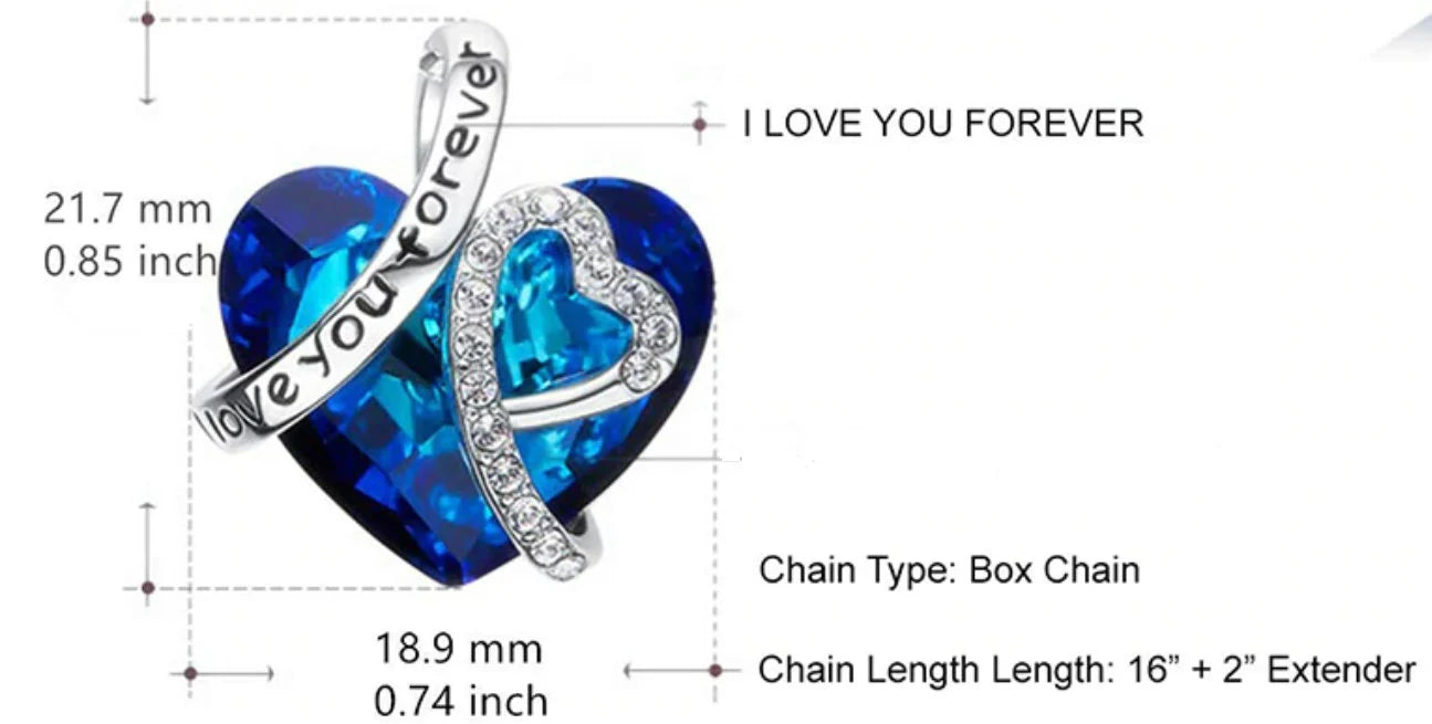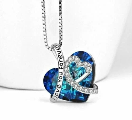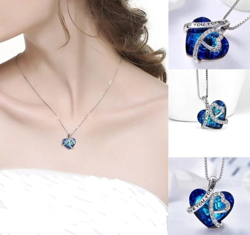Women's Blue Heart Crystal Pendant Necklace 925 Silver